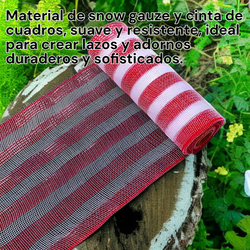 ● Material de snow gauze y cinta de cuadros, suave y resistente, ideal para crear lazos y adornos duraderos y sofisticados.