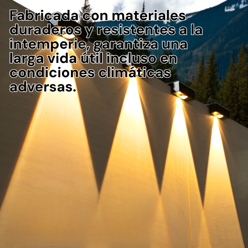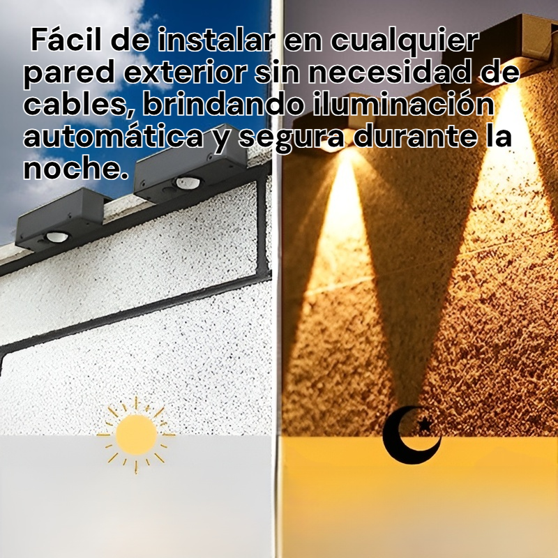 ● Fácil de instalar en cualquier pared exterior sin necesidad de cables, brindando iluminación automática y segura durante la noche.